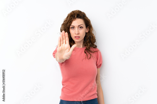 Fototapeta premium Young pretty woman over isolated background making stop gesture