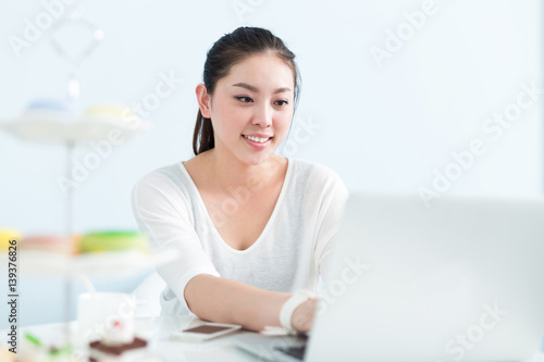 © zhu difeng, Obraz premium young pretty woman using laptop in office