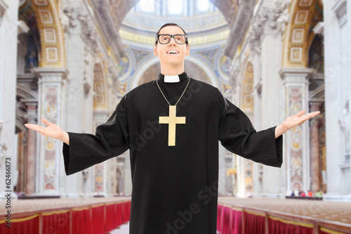 © Ljupco Smokovski, Naklejka premium Young priest praying to god in a cathedral