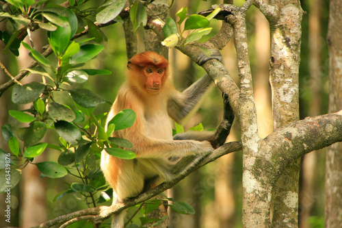 © donyanedomam, Naklejka premium Young Proboscis monkey sitting on a tree, Borneo, Malaysia