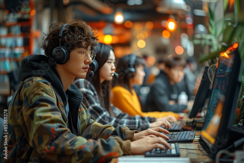Obraz premium Young Professionals Coding in Startup Office