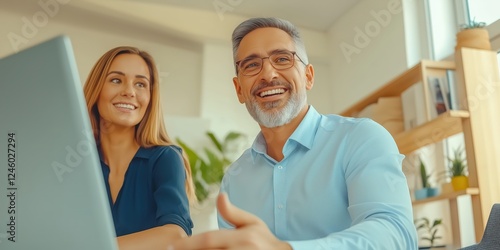 © WD Stock Photos, Obraz premium Young Professionals Discussing Ideas with Tablet in Modern Office Setting