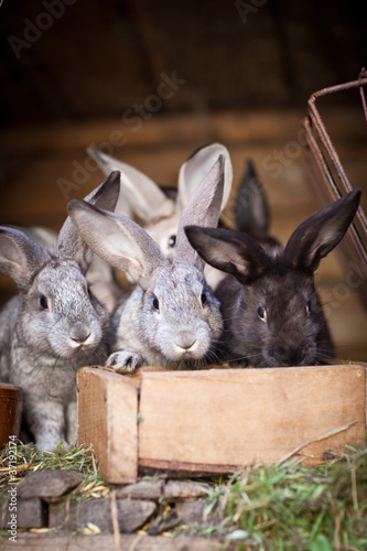 © lightpoet, Obraz premium Young rabbits popping out of a hutch