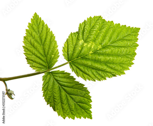 © Юлия Буракова, Fototapeta premium Young raspberry bush leaves isolated on a white background, closeup.