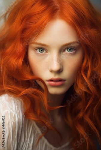 © loran4a, Fototapeta premium Young red hair natural beauty fashion model girl