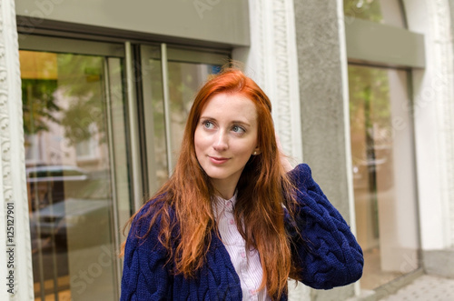 © retoncy, Fototapeta premium Young red woman walking in the city