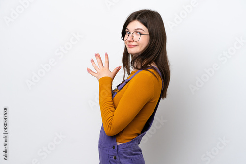 © luismolinero, Fototapeta premium Young Russian woman isolated on blue background scheming something