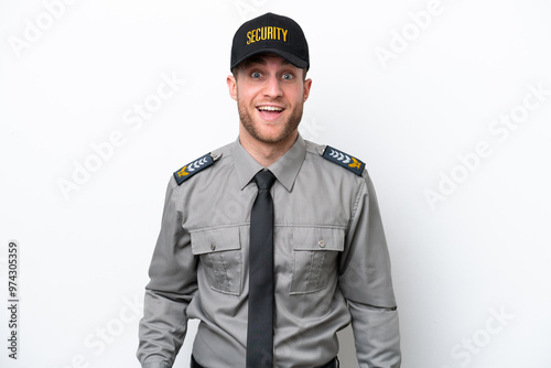 Fototapeta premium Young safeguard caucasian man isolated on white background with surprise facial expression