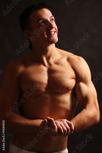 © Andrey_Arkusha, Fototapeta premium young sensual man on a black background