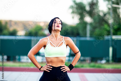 Fototapeta premium Young sexy fitness girl relax and pose after exercise on the park