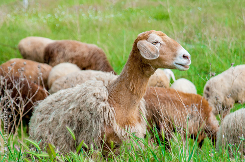 © Irina Sokolovskaya, Naklejka premium Young sheep on pasture