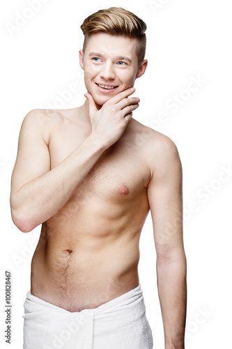 © Anatoly Repin, Fototapeta premium Young shirtless man isolated on white