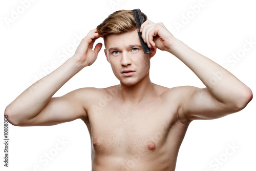 © Anatoly Repin, Fototapeta premium Young shirtless man isolated on white