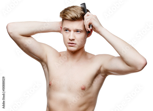 © Anatoly Repin, Fototapeta premium Young shirtless man isolated on white