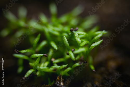 © Татьяна Буланова, Naklejka premium Young shoots of Irish moss "mshanka awl-shaped" are grown for seedlings for a garden or cottage.Seedlings are about two weeks old. Photos with a shallow depth of field.