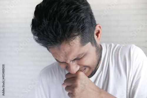 © Towfiqu Barbhuiya , Fototapeta premium young sick man coughing and sneezes