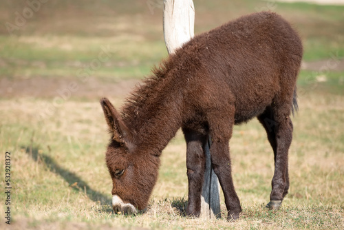 © Konstantin, Fototapeta premium Young small brown donkey on a livestock farm