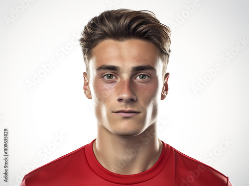 © Llama-World-studio, Fototapeta premium Young soccer player standing isolated against a white background
