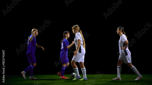 Fototapeta premium Young soccer players coordinating midfield play during possession. Concept of...