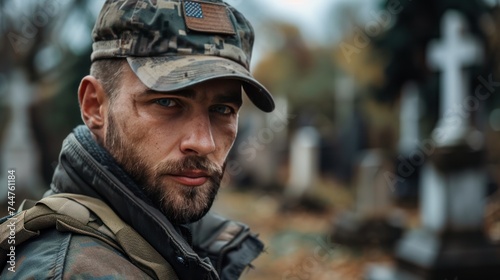 Fototapeta premium Young Soldier's Contemplative Gaze