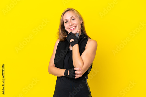 © luismolinero, Obraz premium Young sport English woman isolated on white background smiling