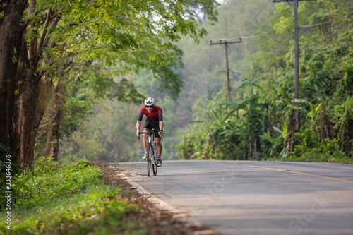 Obraz premium Young sportsman action the cyclist road bicycle