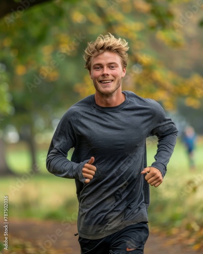 © PaulShlykov, Obraz premium Young sporty man exercising in park.
