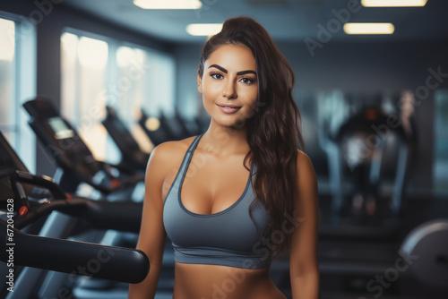 Obraz premium Young sporty woman doing sport in the gym center, run on treadmill . Healthy lifestyle