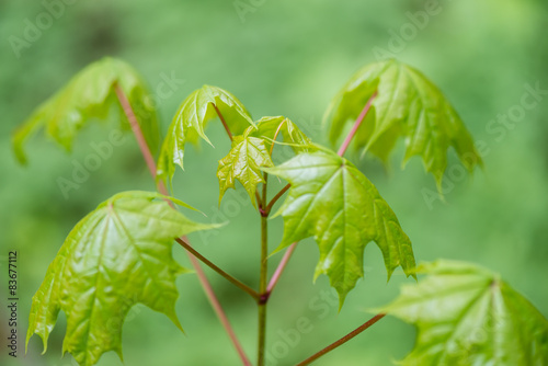 © Martins Vanags, Obraz premium young spring maple tree leaves on green background