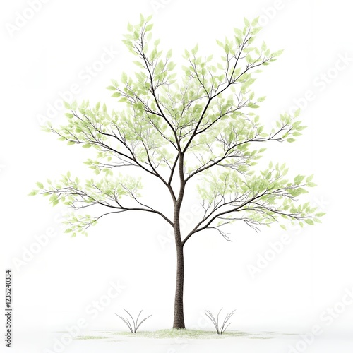 Obraz premium Young Spring Tree Isolated on White Green Leaves Nature Botany Plants Landscape Design Ecology