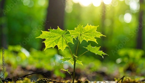 © Abbasya, Fototapeta premium Young sprout in forest floor