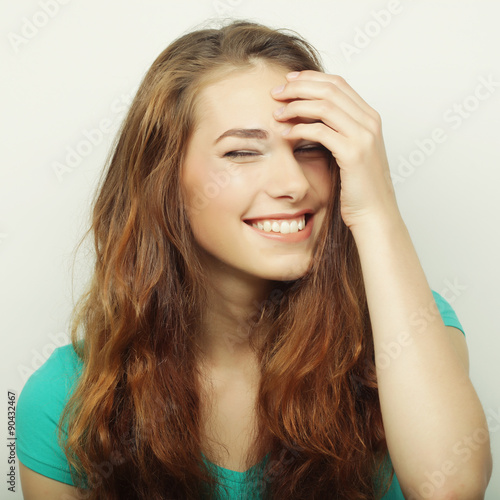 © Raisa Kanareva, Naklejka premium young surprised woman. Studio shot.