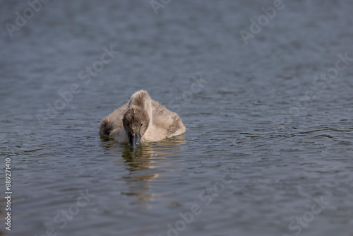 © rsooll, Fototapeta premium young swans in gray down swim on the lake