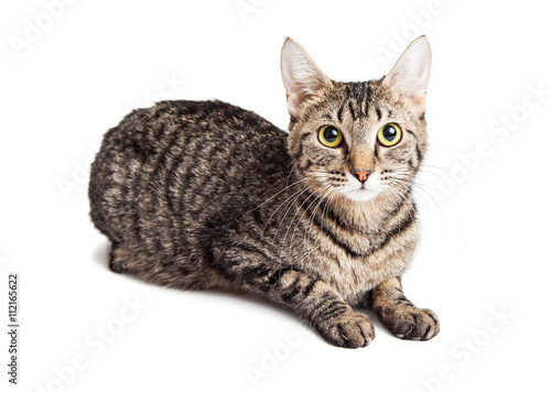 © adogslifephoto, Obraz premium Young Tabby Cat Laying on White