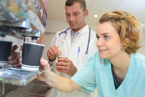 © auremar, Obraz premium young team of doctors having coffee break at hospital