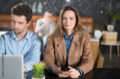 Fototapeta premium Young teamwork in a cafe