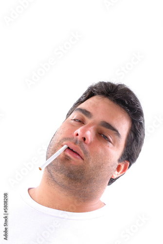 Obraz premium Young tired man with an cigarette in the mouth .