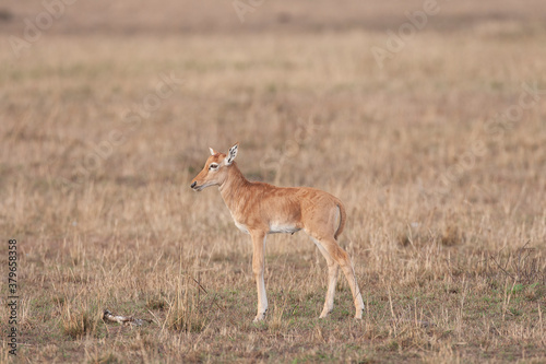 Naklejka premium Young Topi antelope in Masai Mara Kenya Africa