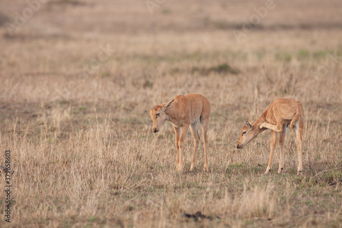 Naklejka premium Young Topi antelope in Masai Mara Kenya Africa