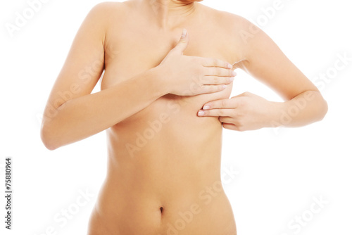 © Piotr Marcinski, Fototapeta premium Young topless woman is doing breast self examination.