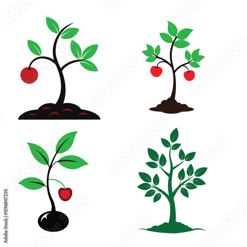 Fototapeta premium Young Tree and Fruit Plant Illustrations