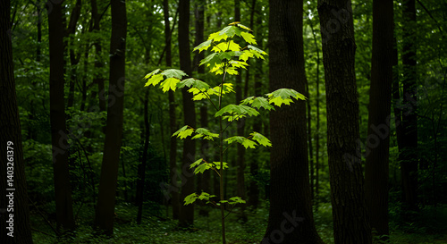 Fototapeta premium Young Tree In Forest Sunlight