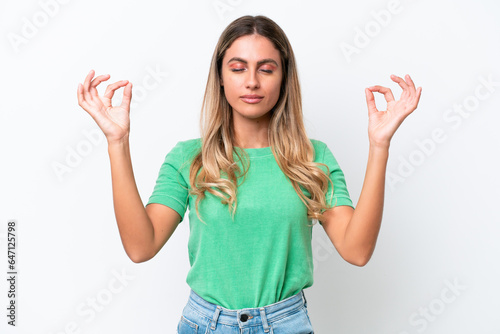 Obraz premium Young Uruguayan woman isolated on white background in zen pose