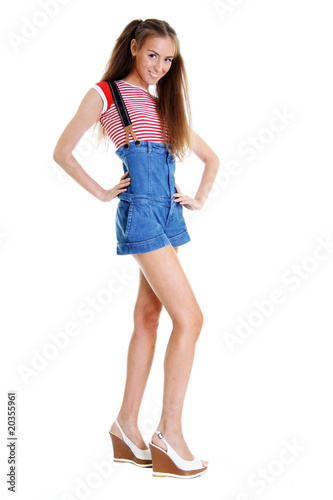 © Andrey_Arkusha, Fototapeta premium Young very happy gesturing smiling woman, isolated on white