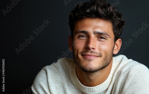 Obraz premium young vogue confident smiling man with short hair, wearing a light solid...