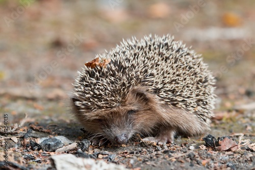 Fototapeta premium young west European hedgehog on the ground. Common hedgehog. Erinaceus europaeus