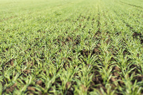 Fototapeta premium Young Wheat Growing in the Field Neat Rows