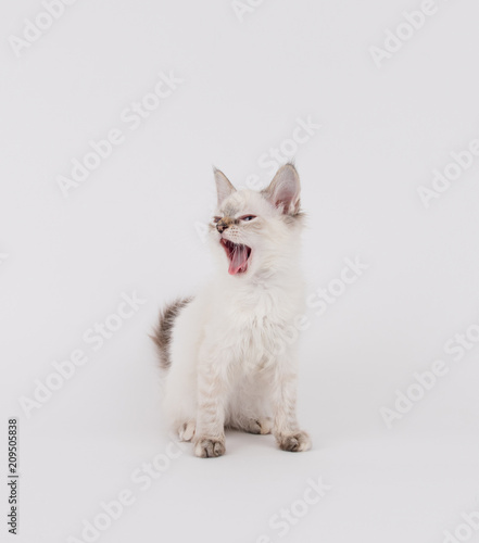Fototapeta premium Young White Kitten with Brown Tips on Plain Background
