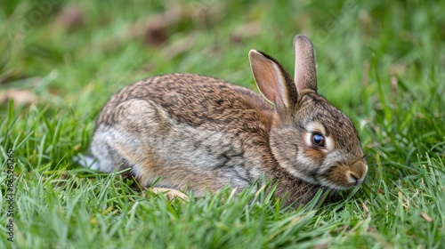 © TheWaterMeloonProjec, Fototapeta premium Young wild rabbit grooming on grass in North Yorkshire UK