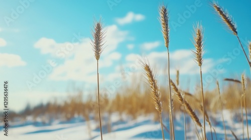 Fototapeta premium young winter wheat on blue sky background